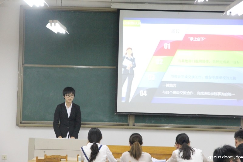 本次竞选本着“公平、公正、公开”的原则,共要选出综合事务部、宣传信息部、学习发展部、创新创业部、素质拓展部、社区服务部、权益保障部、文体活动部各部门部长一名、副部长两名。在竞选的过程中,每个竞选者都神态自然,语言流利,姿态端庄大方,他们都通过上台演讲向大家展示他们的工作经验,工作能力及对未来的工作做出规划,并充分表现出他们的自信心,责任心与上进心。竞选流程有条不紊的进行着,每位竞选者精彩的演讲都会博得台下师生的阵阵掌声。