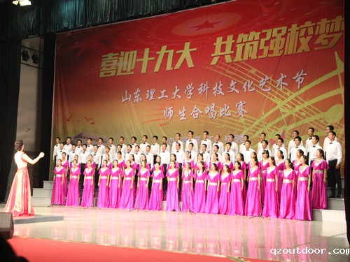 为迎接党的十九大,庆祝建党96周年,弘扬优良革命精神,激发同学们的爱国热情,争做“五有人才”,10月17日晚,山东理工大学第十二届“喜迎十九大,共筑强校梦”合唱比赛决赛于大学生事务中心礼堂正式举行。我院由师生组成的合唱队参加本次比赛。