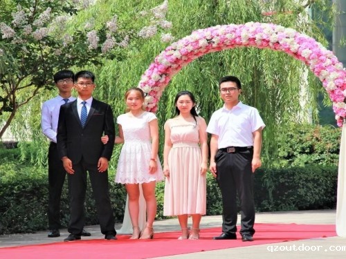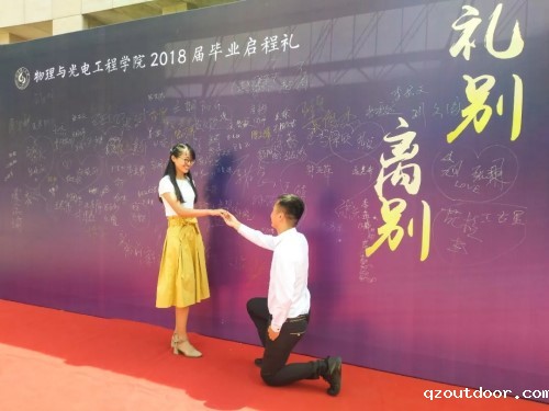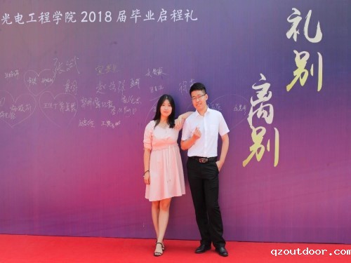 毕业生启程礼现场,毕业生携手好友、伴侣穿着盛装结伴踏上人生中的第一个红毯,自信地走向签名墙,写下名字,并合影留念,以庄重的方式告别大学生活,走上人生新征程!