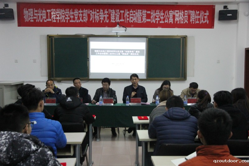 11月22日下午,学院于15号教学楼226会议室召开物理与光电工程学院学生党支部“对标争先”建设工作启动暨第二批学生公寓“网格员”聘任仪式,学院党总支书记常允起、校党委组织部副部长李涛、学生工作处副处长李志慧、院党总支副书记戴洁、院团总支崔鹏、张起老师以及学院全体学生公寓“网格员”、舍长参加此次会议,会议由戴洁主持。