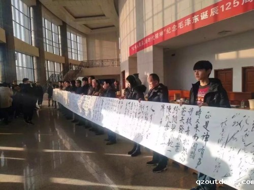 12月26日是毛主席诞辰125周年,在这个伟大的日子里,全校师生书法爱好者代表在长12.26米的长卷上共同书写毛主席诗词,共同学习传承革命伟人的坚定信念和革命精神,培养青年学生的民族精神和爱国主义情怀。