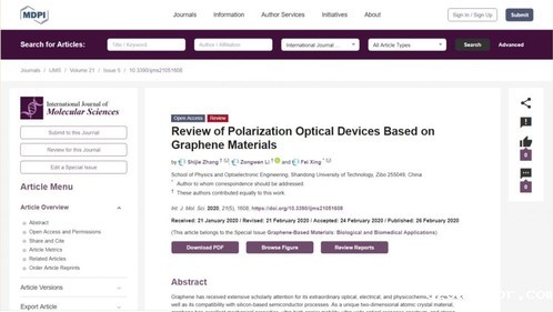 论文题目Review of Polarization Optical Devices Based on Graphene Materials