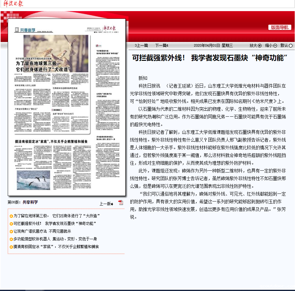 》在网页版和纸质版分别报道了我院张芳老师在低维光电材料方面的科研成果,引起较大关注。
