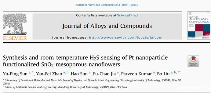 近日,我院教师孙玉萍副教授在用于硫化氢室温气敏传感器材料的研究方面取得新进展,研究成果以“Synthesis and room-temperature H2S sensing of Pt nanoparticle functionalized SnO2 mesoporous nanoflowers”为题发表在国际重要学术期刊《Journal of Alloys and Compounds》(影响因子:4.175,中科院最新分区2区)上,通讯作者为孙玉萍副教授、刘波教授。论文工作依托betway备用网站“功能分子材料实验室”平台完成,得到了山东省自然科学基金委的资助。
