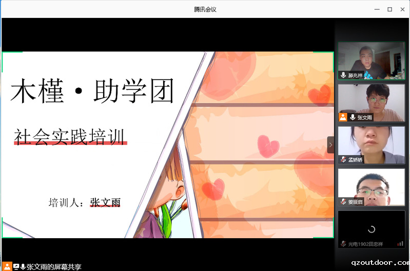 719日晚,木槿·助学团全体成员于腾讯会议召开动员暨培训大会。队长张文雨带领队员一起学习社会实践中的内容、安全指南和应急预案,并且就即将开展的社会实践进行整体部署。