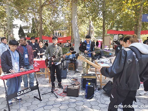 我院指弹之间吉他协会于10月25日在山东理工大学东校区中心花园进行会演宣传活动。此次活动由山东理工大学校团委主办,山东理工大学校社团联合会承办,我院指弹之间吉他协会积极参与会演纳新。