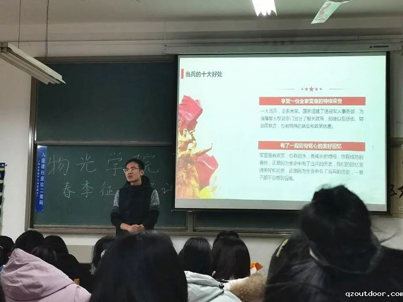 为进一步贯彻落实我省征兵工作相关要求,扎实推进我校大学生应征入伍工作,我院于2020年12月15日18:50在15号教学楼340教室和203教室召开2021年征兵入伍宣讲和征兵入伍主题班会。此次会议由优秀退役大学生代表王浩成、刘峰、张媛媛、吴刚和2020及辅导员张继武同本院2020级同学共计200余人参加。