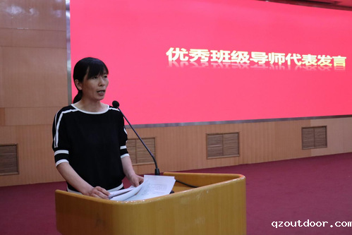 周爱萍作为优秀班级导师代表发言,她将几年来工作的体会从“牢记使命,抱着初心履行职责”、“爱岗敬业,怀着感情开展工作”、“细雨润物,带着耐心鼓励学生成长”、“注意方式方法,成就每个学生”四个方面向做了精彩的汇报。她表示,自己将珍惜荣誉,继续潜心从教,帮助学生全面发展,为学院优良学风建设贡献自己的一份力量。
