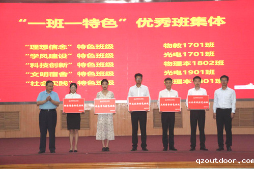 物教1701班吴新月、光电1701班吕琦、物理本1802班王传河、光电1901班陈加刚、物理本1801班惠鸢飞分别代表各自班级进行了汇报,通过精心准备的PPT向大家展现了本班在形成特色班集体过程中的点点滴滴。他们表示班级特色的形成离不开学院的指导和班级同学的共同努力。光电1701班冯言泽做为考研优秀代表发言。把坚持交给自己,把结果交给命运是他的信条。冯言泽表示考研之路,“坚持”二字贯穿始终,也唯有坚持,才能收获成功。最后,他表达了对学校、学院、老师及全体同学的感谢之情。