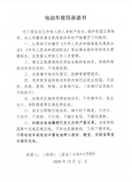 积极参与学校组织的消防演练,加强学生消防安全意识,每学期排查一次各宿舍的吸烟人员情况,并组织学生签订禁烟承诺书和电动车使用承诺书。创建无烟宿舍,倡导文明用车。