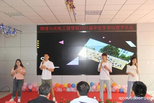 仪式前,毕业生代表林爽、孔倩、王翔正和大二学生代表刘文豪、大一学生代表侯晗共同献上《再见》和《青春纪念册》两首歌,让青春在歌声中回荡,让记忆在时光中留存。流年易逝,聚散有时,梦想永不散场。
