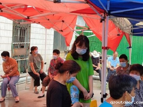 团队负责人合理分工,志愿服务活动正式展开。此次社会实践活动团队成员分别负责四项工作,四人负责监管接种室进出秩序,检查接种人员离开时间是否符合规定时间;三人负责管控进入接种室接种人数以及接种室秩序和接种完成后时间纸条的发放与填写;两人负责为接种人员通知讲解接种完成后的注意事项;其余两人在等候区负责答疑解惑,管控场内秩序及卫生情况。上午服务结束后,团队成员在沣水镇人民政府内设食堂完成就餐,下午重新进行人员分配后继续进行志愿服务工作。下午五点,所有工作顺利完成,全体团队成员集合后安全返回。