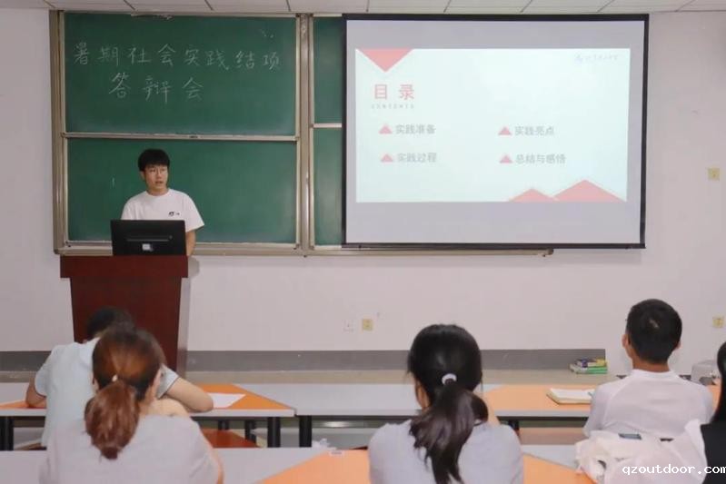会议伊始,学生会青年发展部素质拓展组负责人杜成龙介绍了学院暑期社会实践开展的基本情况,宣读了本场答辩的详细规则和评分标准。接着,七支优秀队伍按抽签顺序依次进行实践课题展示,分别从实践目的、实践内容、实践成果、心得体会等部分进行陈述,分享各自的实践成果与收获。