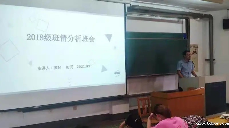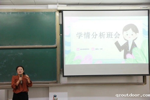 张起老师从各班级学习成绩分析、奖学金获得者展示、和竞赛获奖展示三个方面对 5个班级进行班情学情分析 ,通过每个班级之间的对比和每个班级过去3年发展历程的对比 ,展示每个班级的特点。他指出,大学四年弹指一挥间,鼓励就业考研的同学要坚持奋斗,刻苦努力,切实走好大学阶段的“最后一公里”。