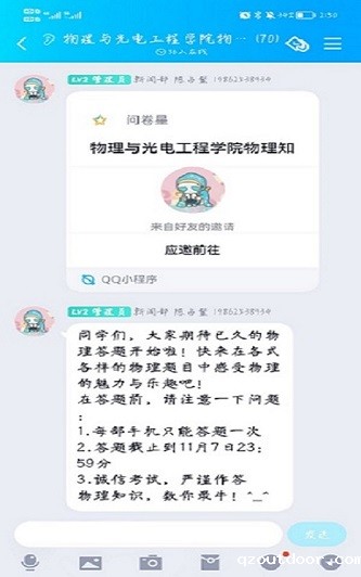11月7日,我院光电先锋社于线上举行“物理知识,数你最牛”趣味物理知识竞赛活动。本次活动由新闻部部长王振龙主持,新闻部成员杨树盛负责活动策划,陈占鳌、赵兹杰负责题目设计。本次活动共有60名同学参与。