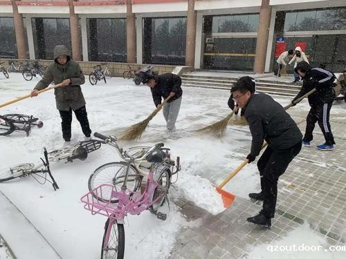 志愿者们不畏严寒,挥舞雪铲,经过清扫,道路上的积雪基本清理干净,为师生创设了出行方便、安全通畅的道路。