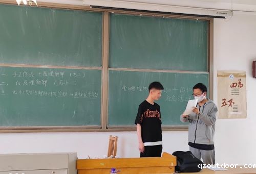 活动开始前,社团成员先在到梦空间APP上进行宣传工作,学生可于4月21日至4月23日进行线上报名,通过空间转发的方式鼓励同学积极参加。报名者于4月24日带着自己的手工作品到15号教学楼341教室参加活动。活动期间参赛者依次上台讲述自己的作品并阐述其所运用的物理知识,最后由评委进行评选打分,统一评奖。