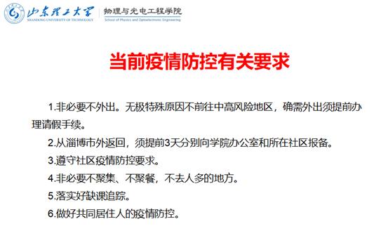 会议最后,王冰就当前疫情防控工作进行了安排部署。她强调学院全体教职工非必要不外出。无极特殊原因不前往中高风险地区,确需外出须提前办理请假手续。从淄博市外返回,须提前3天分别向学院办公室和所在社区报备。遵守社区疫情防控要求。非必要不聚集、不聚餐,不去人多的地方。任课教师落实好缺课追踪。做好共同居住人的疫情防控。