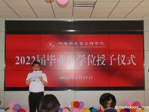 6月17日下午,我院2022届毕业生学位授予仪式在大学生就业市场隆重举行。学院党委书记王冰、院长付圣贵、党委副书记范小平、副院长孙玉萍、副院长满忠胜、各系(室)主任以及全体辅导员出席仪式,2022届全体毕业上参加,仪式由范小平主持。