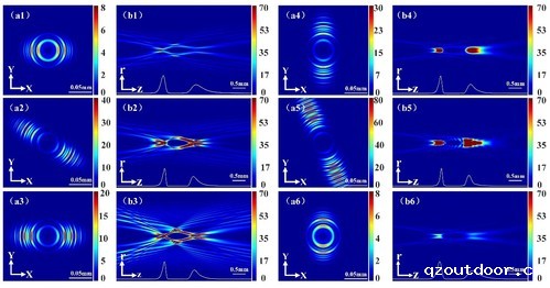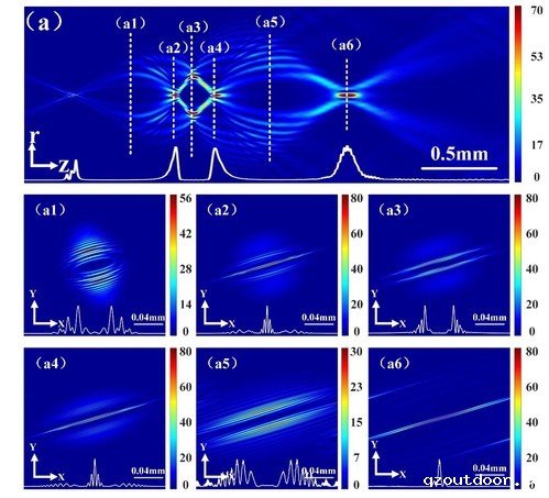 4名同学从阅读、翻译科技文献起步,到如何操作实验仪器、如何整理实验数据、如何撰写英文文章,一步步深入。同学们在张丽萍老师的指导下,研究了啁啾调制下椭圆皮尔斯高斯涡旋光束(CEPGV)在自由空间的传输特性。经过对啁啾因子和椭圆参数的优化计算,得到在自由空间中传输的椭圆皮尔斯高斯涡旋光束的连续多光瓶结构,以及在光束偏转、强啁啾因子和双涡旋的共同调制下,焦点处横向强度分布由圆形孔洞变为狭窄细缝,为粒子捕获和引导带来了更多的可能性。