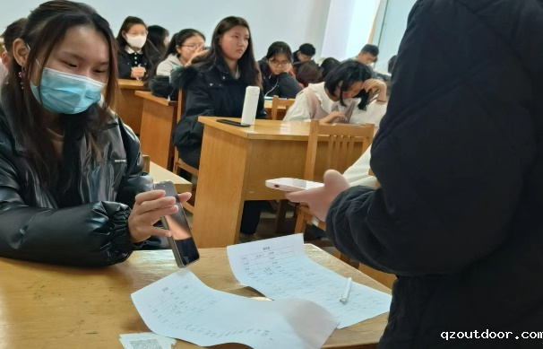 同学们进入教室,有序进行签到,等待电影开始放映。