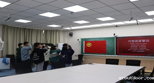面对着鲜艳的中国共青团团旗,新发展团员王一川、于昊弘、李智贤,在郭光耀等5名优秀团员的带领下,共同举起右拳,许下庄严誓言:“我志愿加入中国共产主义青年团,坚决拥护中国共产党的领导,遵守团的章程,执行团的决议,履行团员义务,严守团的纪律,勤奋学习,积极工作,吃苦在前,享受在后,为共产主义事业而奋斗。”