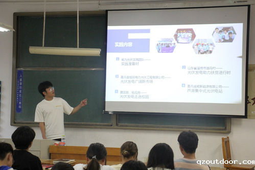 紧接着,由桑率然为大家分享他的实践经验。分享分为四个部分:报名、前期准备、实践成果、实践感悟。桑率然指出,报名时主题名字要尽量新颖,但又不要假大空。前期准备需要把各方面都商量好,如提前安排好行程,食宿、经费问题,联系好调研、支教单位、以及最重要的安全问题。实践过程中既要保留特色,又要有所创新,宣传展示工作一定要做好。