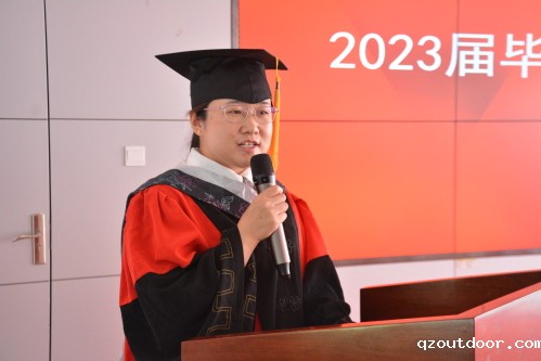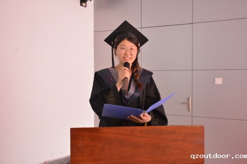 徐彩雪回首了大学四载的春秋寒暑,描绘的幕幕场景就像张张绚丽的剪纸画,串成一部即将谢幕的电影,记录着她们的青春与过往,播放着她们的快乐与忧伤,承载着她们在学院里的点点滴滴。最后,她代表全体毕业生们感谢学院领导老师们四年的辛勤裁培和谆谆教导,并祝福母校母院未来更加美好。