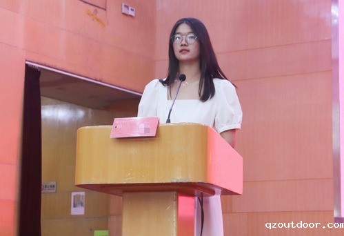 新生代表光电2302班张越影表达了初到山理工的欣喜,以及对学院无微不至关心关照的感谢。她向全体新生发出倡议,要以最饱满的精神面貌迎接崭新的大学生活,坚定信念、勤勉奋进,以青春为撸,扬梦想之帆。