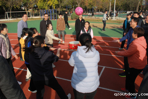 随后,参赛师生以班级或团队为单位分赴各个比赛地点开始精彩激烈的角逐。比赛设有趣味竞技赛:指压板障碍跑(翻扑克牌)、“不倒森林”、吸管接力赛、“蛟龙出海(8人9足)”、呼啦圈“过山车”、击鼓颠球(同心鼓)6项和拔河比赛。