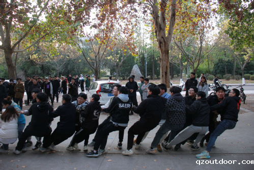 随后,参赛师生以班级或团队为单位分赴各个比赛地点开始精彩激烈的角逐。比赛设有趣味竞技赛:指压板障碍跑(翻扑克牌)、“不倒森林”、吸管接力赛、“蛟龙出海(8人9足)”、呼啦圈“过山车”、击鼓颠球(同心鼓)6项和拔河比赛。