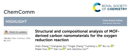 我院霍培培教授指导团队在燃料电池储能领域取得重要进展,相关论文“Structural and compositional analysis of MOF-derived carbon nanomaterials for the oxygen reduction reaction”为题,发表在二区自然指数(Nature Indexed)期刊《Chemical Commuinications》上。我院2020级研究生张金洁为第一作者,霍培培副教授为通讯作者,我院为第一通讯单位。原文链接:https://doi.org/10.1039/D3CC05653H.