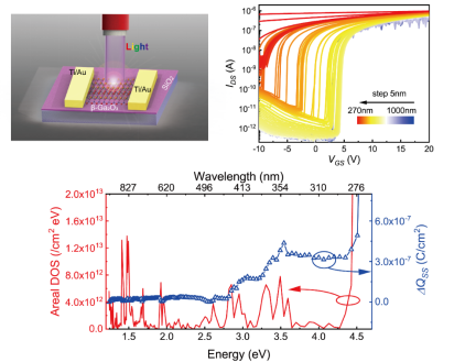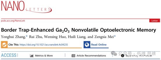 边界陷阱是SiO2中的一种常见三价缺陷中心,是一种深能级的空穴陷阱态。张永晖等人提出一种能够实现非易失性光电存储的新方法,即把在β- Ga2O3中光生的空穴存储在SiO2的边界陷阱中,让电子和空穴分隔开,以便延长载流子的寿命,采用该方法实现的光电存储器可实现超过10年的数据存储时间。研究内容受到中国科学网,MIT科技评论,deeptech深科技等多家科技媒体的报道。相关研究以《Border Trap-Enhanced Ga2O3 Nonvolatile Optoelectronic Memory》为题发表在Nano Letters期刊上,我院张永晖博士为论文首位作者,山东理工大学为论文第一单位。