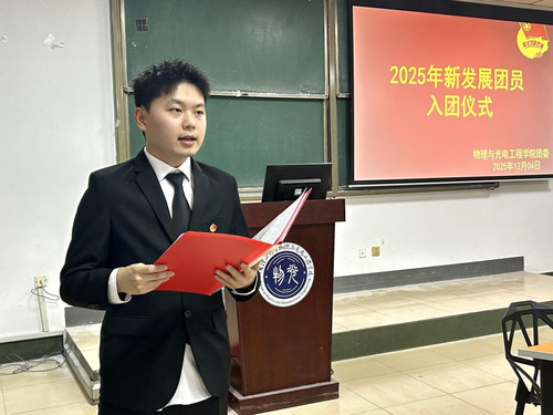 12月5日,我院在15号教学楼335教室举行2025年下半年新发展团员入团仪式。学院团委老师,各年级优秀团员代表以及2025年下半年全体新发展团员参加仪式。仪式由学院团委组织委员张媛主持。